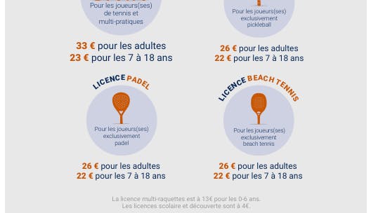 Cette licence prise en ligne, donne accès aux tournois homologués partout en France, toute l’année, pour tous les niveaux et au module de réservation de terrain en ligne.