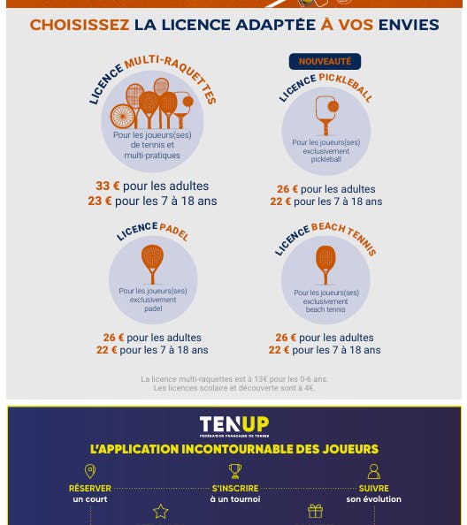 Associée à votre adhésion à un club affilié à la FFT; c'est la garantie de trouver une structure qui répond à vos attentes et facilite votre pratique. Intégrer un club affilié et prendre une licence vous offre de nombreux avantages: